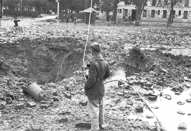 Hochschild points out that Hitler and Mussolini used the Spanish Civil War to test out weapons and strategies that they would later employ in World War II.[14][15] This includes the 1937 bombing of Guernica which was the first ever aerial bombing of civilians by a military air force.[3] Hochschild concludes that Western intervention would have prevented the Nationalist victory in the civil war, but ultimately would not have prevented World War II. The book's final chapter details Merriman's death, with quotes from his widow's letters, and ends with an American woman travelling in 2012 to an old battleground site to honor her uncle's death in 1938.[17][19]